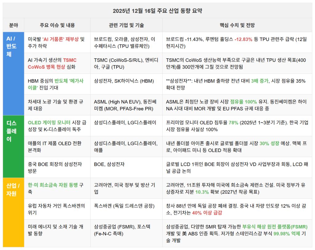 2025년 12월 23일자 주요 뉴스를 바탕으로 반도체, 디스플레이, 산업 및 기술 R&D 분야의 심층 요약입니다.