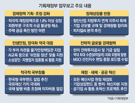- 국민성장펀드: 150조 원 규모의 펀드가 내년부터 본격 가동되며, 첫 투자처로 'K-엔비디아' 육성 등 반도체 및 AI 분야가 선정되었습니다.
