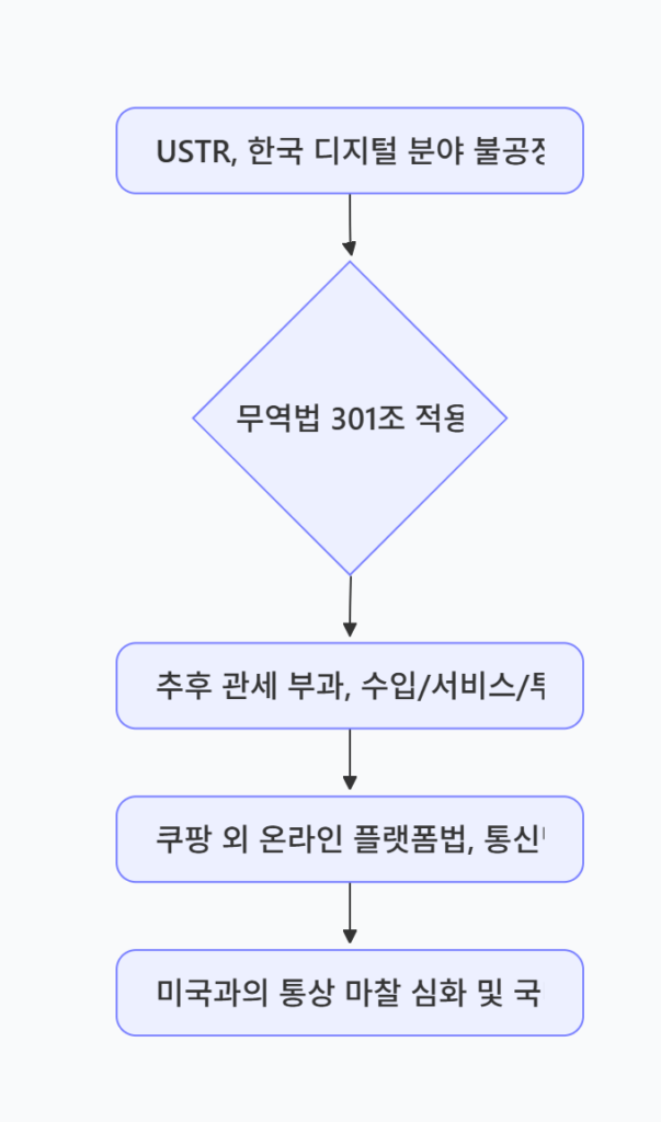- USTR 조사 개시 후에도 당장 보복 조치로 직결되지 않으며, 의견 수렴, 공청회, 협의 등 절차 거침.
